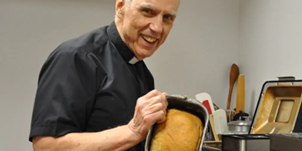 It started during a fortuitous visit to see a fellow Vincentian Priest at St. Mary’s Parish in North Carolina. Upon his arrival, he was greeted by the enticing aroma of freshly baked bread emanating from the parish kitchen. He asked the confrere about the source of this olfactory-captivating smell. The priest rather nonchalantly replied, “It’s homemade bread baking. It’s so easy to make; anyone can do it.” Intrigued, Fr. Shea thought, “Me, a bread maker? Why not?”